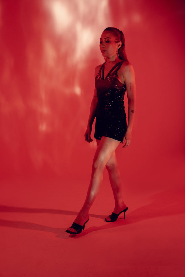 Shorts- Black micro shorts with a hidden elasticised waistband.